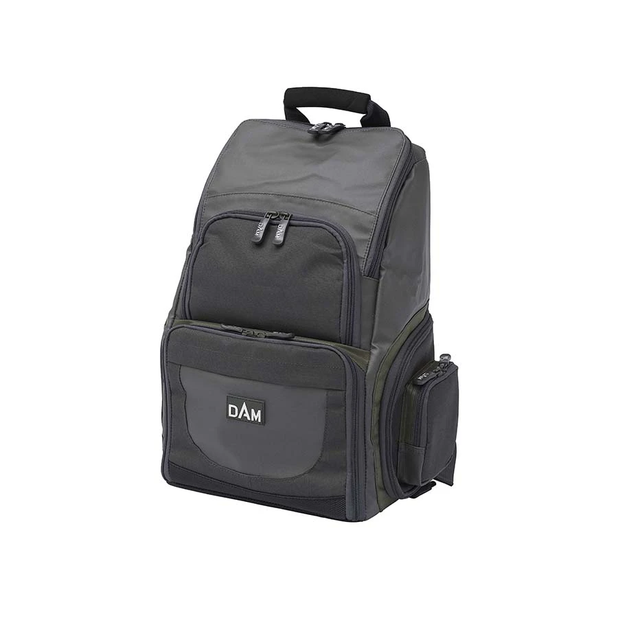 De veelzijdige DAM-rugzak is comfortabel mee te nemen en biedt vele functies. 4 horizontaal verpakte kunstaas dozen bieden ruimte voor een verscheidenheid aan kunstaas. Het hoofdvak biedt ruimte voor voedsel, camera en alle andere soorten apparatuur. Het voorvak is ideaal voor zaken als een mobiele telefoon of iets dergelijks op te bergen. In een van de zijvakken zit een vak voor kleine spullen zoals wartels of haken en de andere compartimenten van de rugzak zijn bedoeld voor het opbergen van sleutels en andere kleine spullen. De dikke gewatteerde schouderbanden maken het dragen zeer comfortabel.