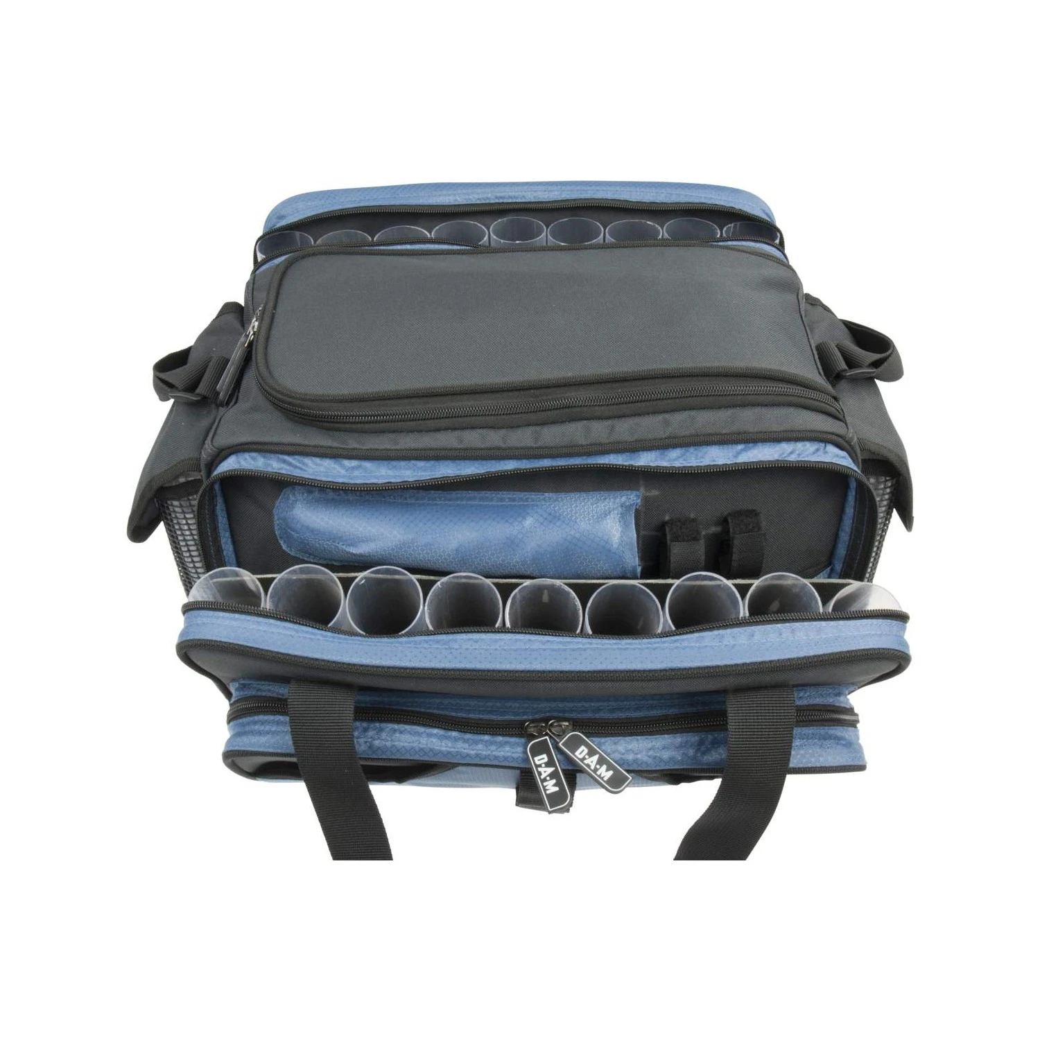 Opmerkelijk veelzijdig en luxe pilk en aas tas gemaakt van 600D Nylon(100%). Heeft 18 buizen voor het opslaan van kunstaas en twee tackle boxen(20x14x4 cm) Zit propvol met handige vakken en is waterproof en een anti-slip rubberen bodem.