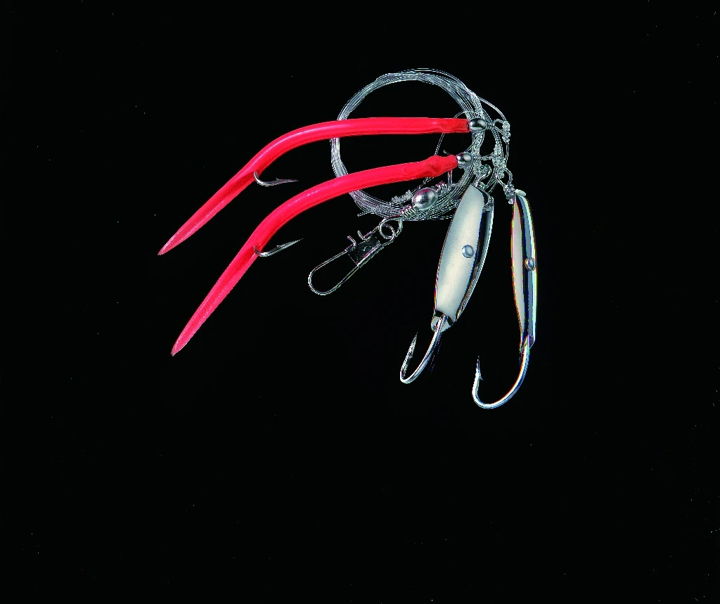 4 sterke haken, combinatie van twee rubber mackerel en twee lepels