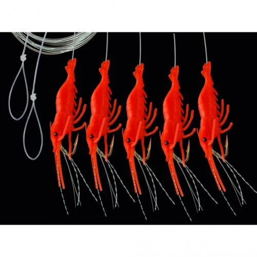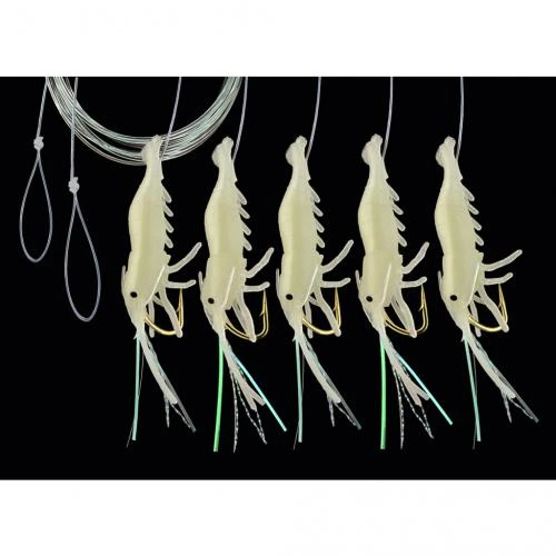 Makreel garnalen leader vangende leader met 5 zijarmen / garnalen. Perfect geassembleerd / geknoopt met aantrekkelijke garnalenimitaties.