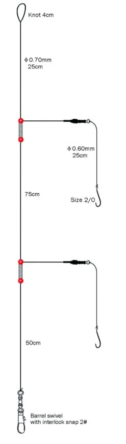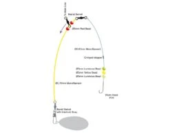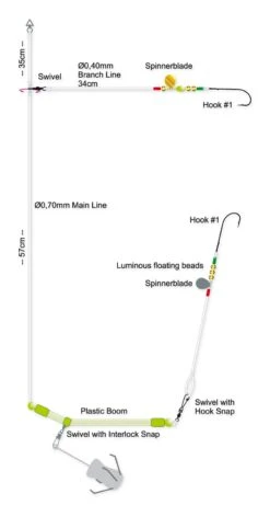 Calamares leader voor Noorwegen. Vangende leader met 2 zijarmen; Perfect geassembleerd / geknoopt met aantrekkelijke UV-garnalen imitaties. Beschikbaar in pakkende kleurvarianten.