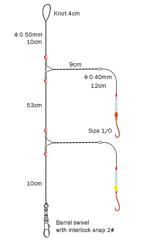 Zebco #1 Flatty Wishbone Rig 14kg L: 0,50m Ø: 0,45mm Hoofdlijn Ø: 0,45mm White/pink