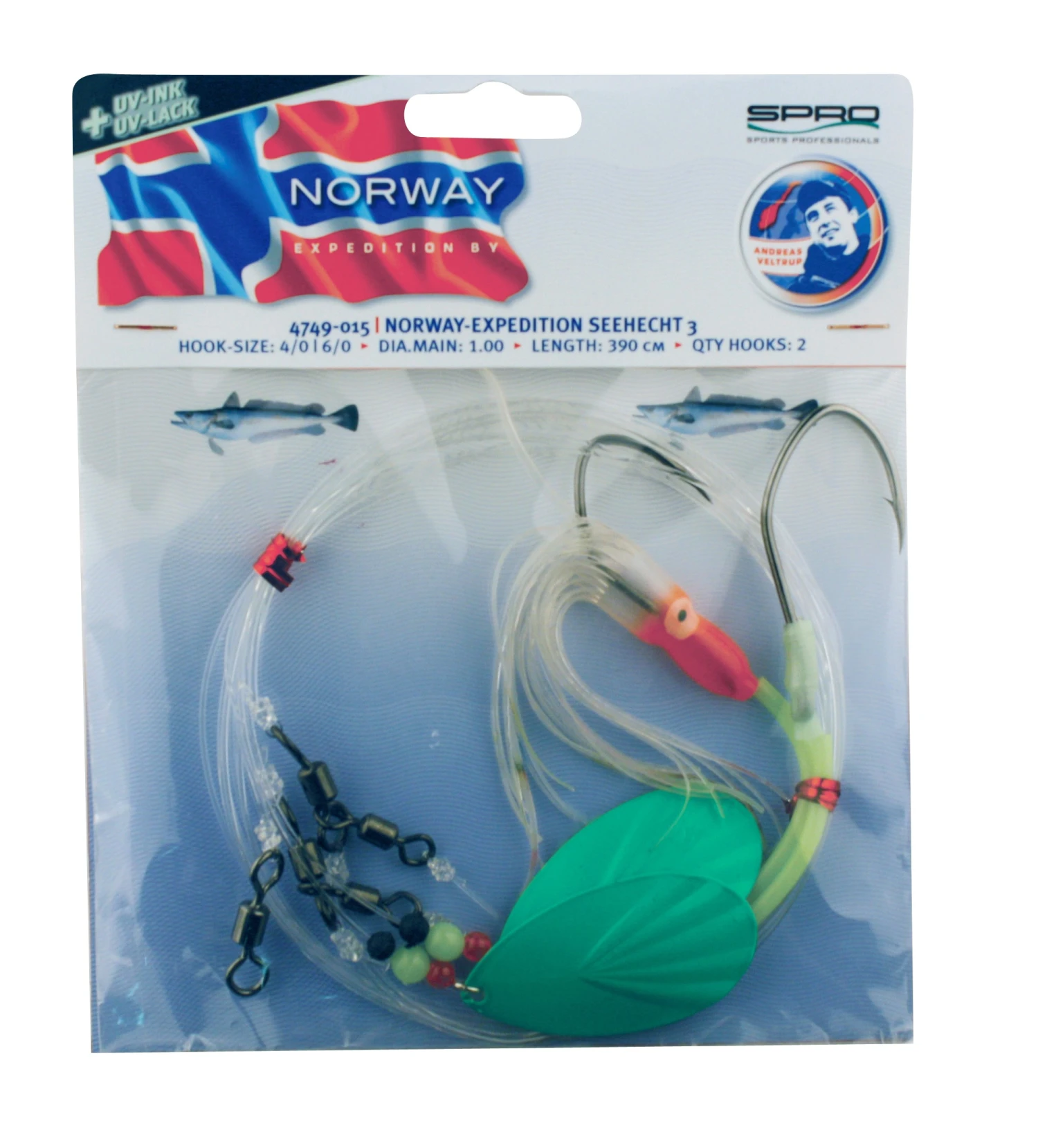 Deze leader lokt heek met UV-licht dat door middel van een speciale coating is toegevoegd aan de octopus en het spinnerblad. De leader kan worden verrijkt met visfilet en wordt dichtbij de bodem gevist met loodgewichten tussen de 300 en 500 gram afhankelijk van de stroming en weersomstandigheden.