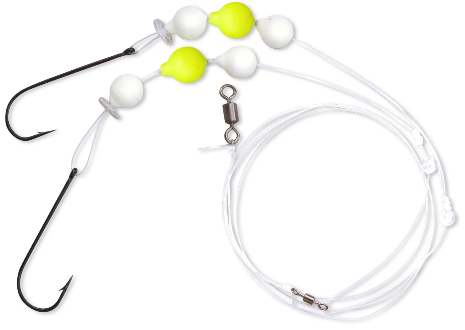 Haakmaat 1, hoofdlijn 0,45 mm, onderlijn 0,45 mm, twee haken. Voor boot-, oever- en strandvissers op kabeljauw, rog, platvis en zeebaars. Wordt geleverd op een spoel.