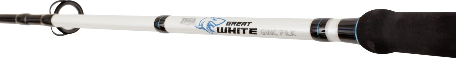 Licht, slank, krachtig en super robuust, dat zijn de attributen van de nieuwe Great White serie. De blanks bestaan uit 100% IM6 carbonfiber, ze zijn zeer slank gehouden en daarbij gemakkelijk te hanteren. De GWC Pilk wordt met name daar ingezet waar er veel van een hengel gevraagd wordt, zoals bijvoorbeeld in Noorwegen en IJsland of op het Gele Rif. Een goede aaspresentatie is van belang in de harde stroming, de Pilk is hier thuis.