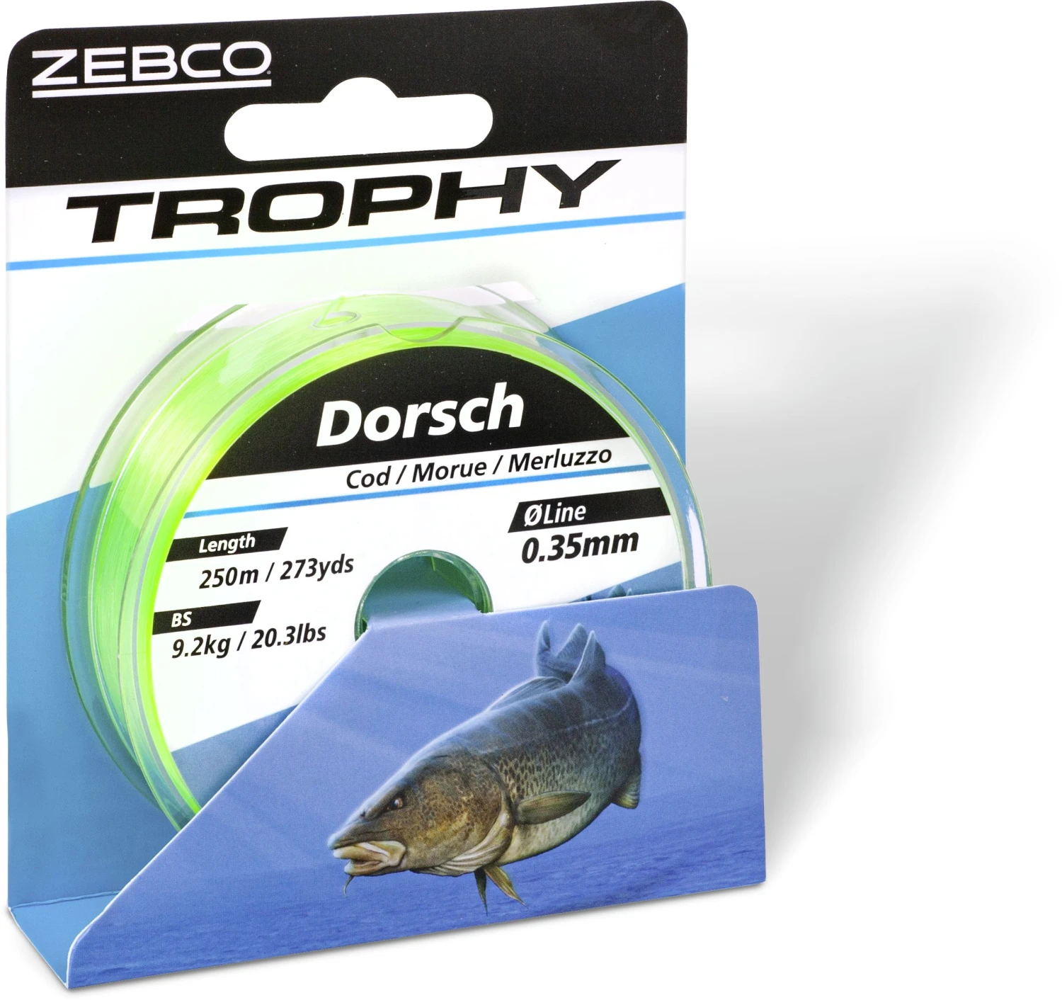 De tweede generatie van de Trophy lijnen met een attractieve verpakking en een nieuwe productietechniek, die alle belangrijke eigenschappen van nylon lijnen op een nieuw niveau brengt. Om grote kabeljauwen vanuit de diepte omhoog te kunnen pompen, moet de lijn over optimale waarden voor wat betreft rek, trekkracht en knoopvastheid beschikken en goed bestand zijn tegen doorschuren. Door de kleur van de lijn is de presentatie van de pilker nu nog beter zichtbaar.