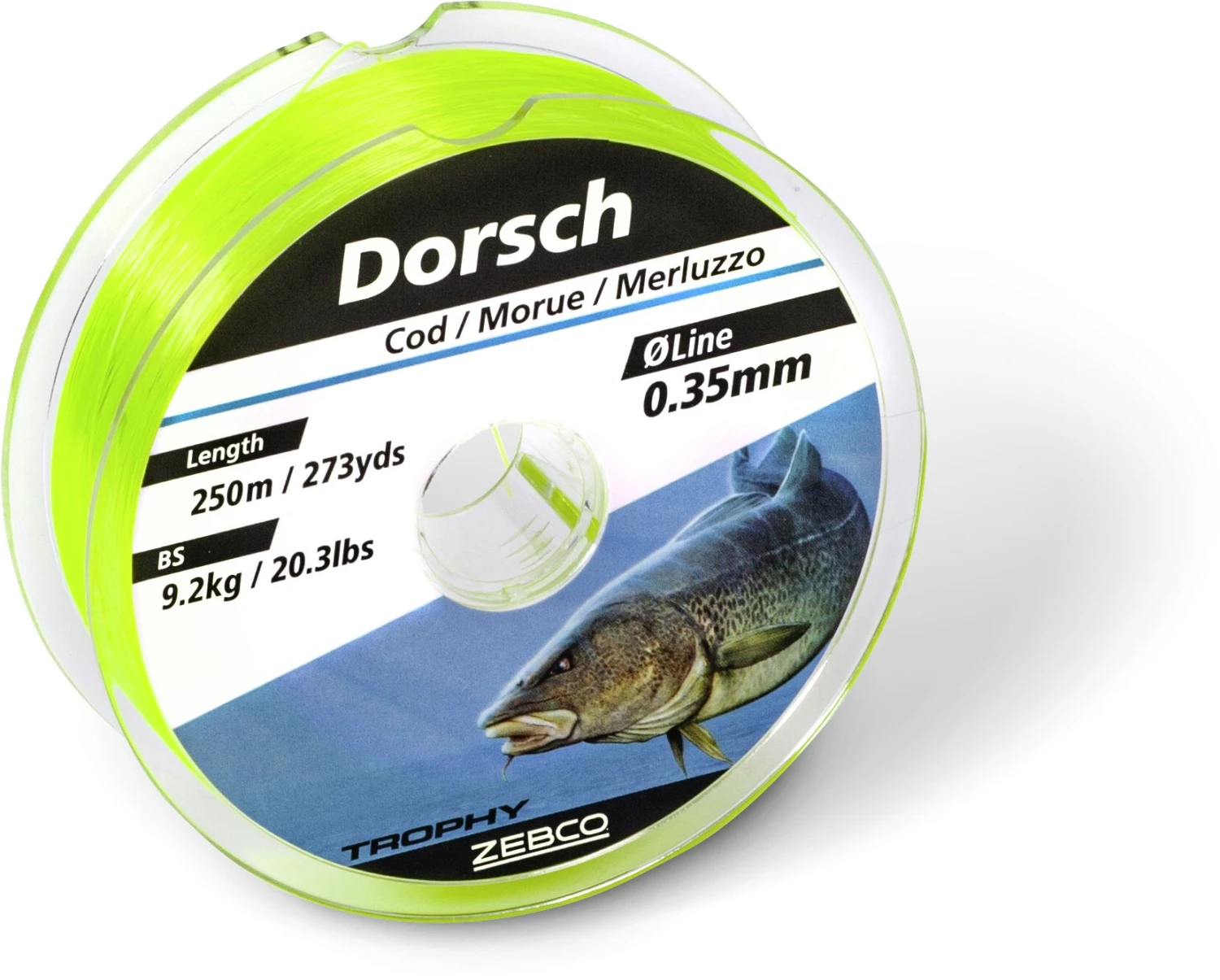 De tweede generatie van de Trophy lijnen met een attractieve verpakking en een nieuwe productietechniek, die alle belangrijke eigenschappen van nylon lijnen op een nieuw niveau brengt. Om grote kabeljauwen vanuit de diepte omhoog te kunnen pompen, moet de lijn over optimale waarden voor wat betreft rek, trekkracht en knoopvastheid beschikken en goed bestand zijn tegen doorschuren. Door de kleur van de lijn is de presentatie van de pilker nu nog beter zichtbaar.